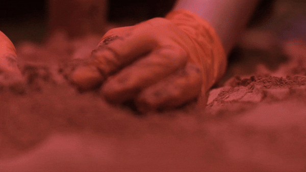 Los amantes se conocen en una excavación arqueológica que devela restos ancestrales. Los vemos bajo tierra, solos en las profundidades. Están expuestas las capas de la tierra y la estructura que las sostiene. Así como su relación, se trata de una estructura frágil, impermanente, que confiesa abiertamente su proceso de construcción y sus tensiones. Al final todo queda enterrado.